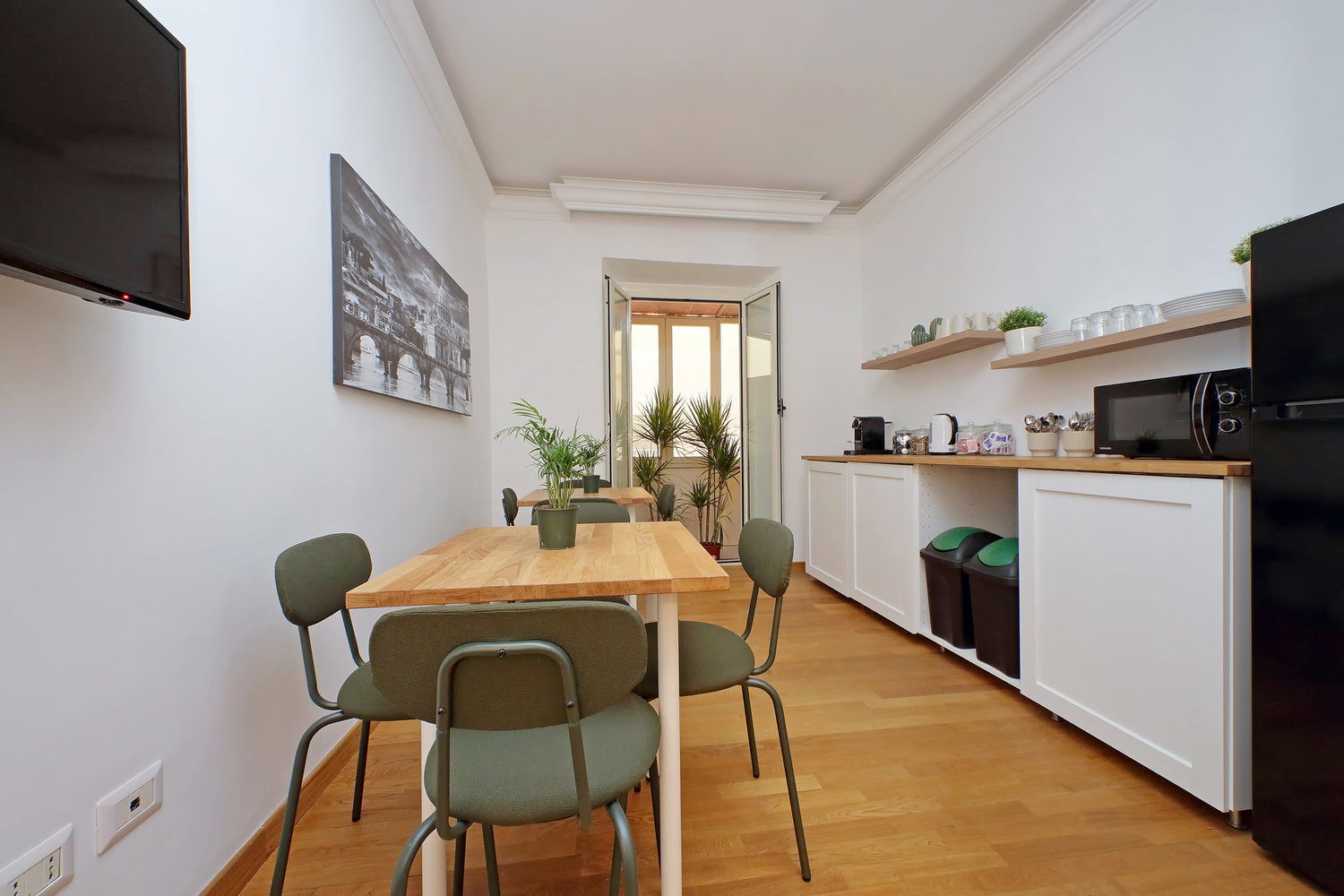 Relax in our refreshment area, always open and at your disposal, where you can enjoy excellent Nespresso coffee from the coffee machine, or prepare tea and herbal infusions using the kettle and microwave.